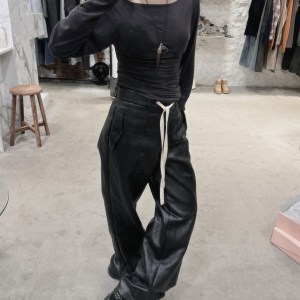寬領/高彈性/舒服磨毛薄棉/激瘦抓褶腰線/獨特設計單品/百搭